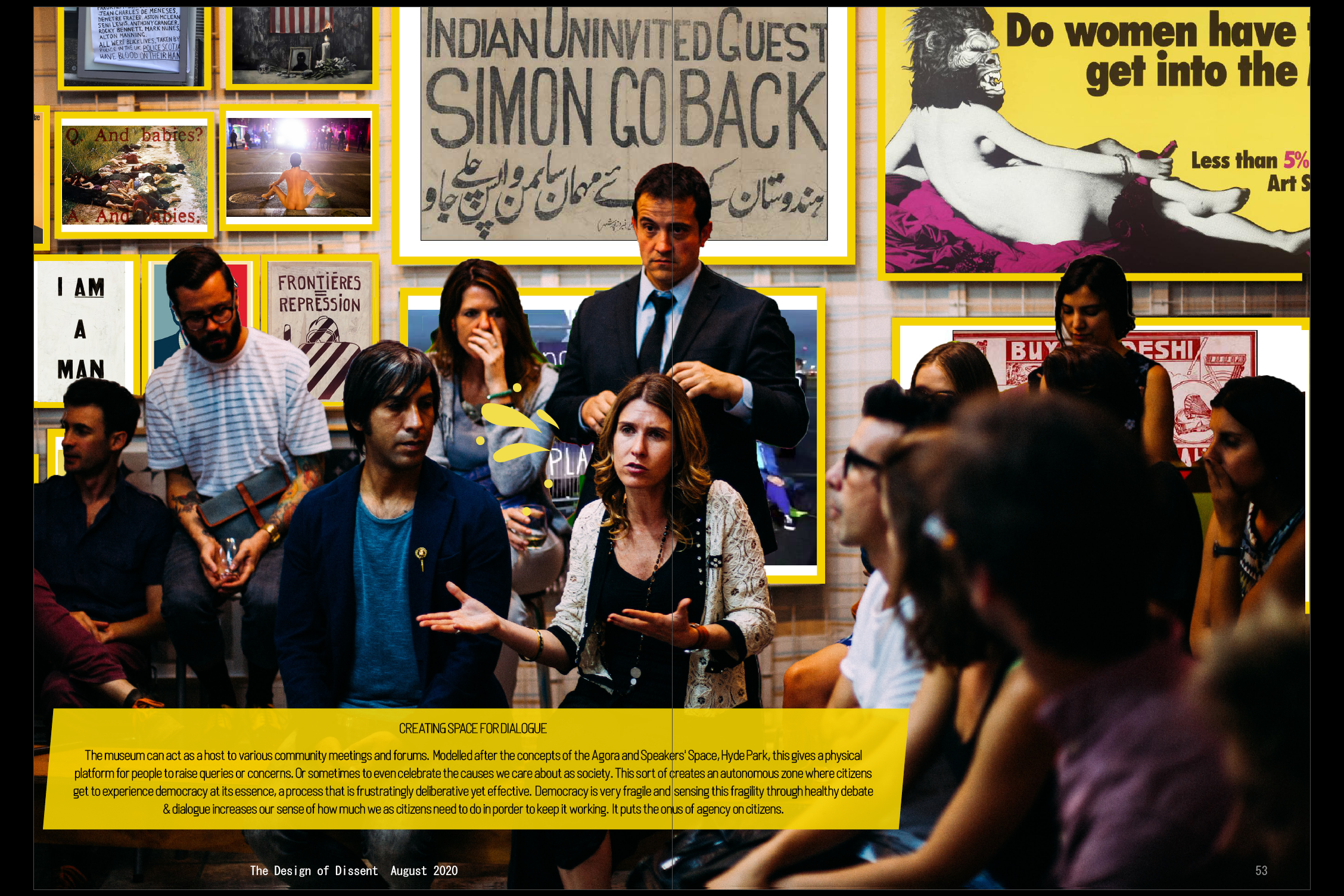 The Outcome: The Design of Dissent combines public pedagogy and participatory design to design a co-curated and co-created space where citizens can educate themselves, engage in, and commemorate people’s power and struggles from the past.